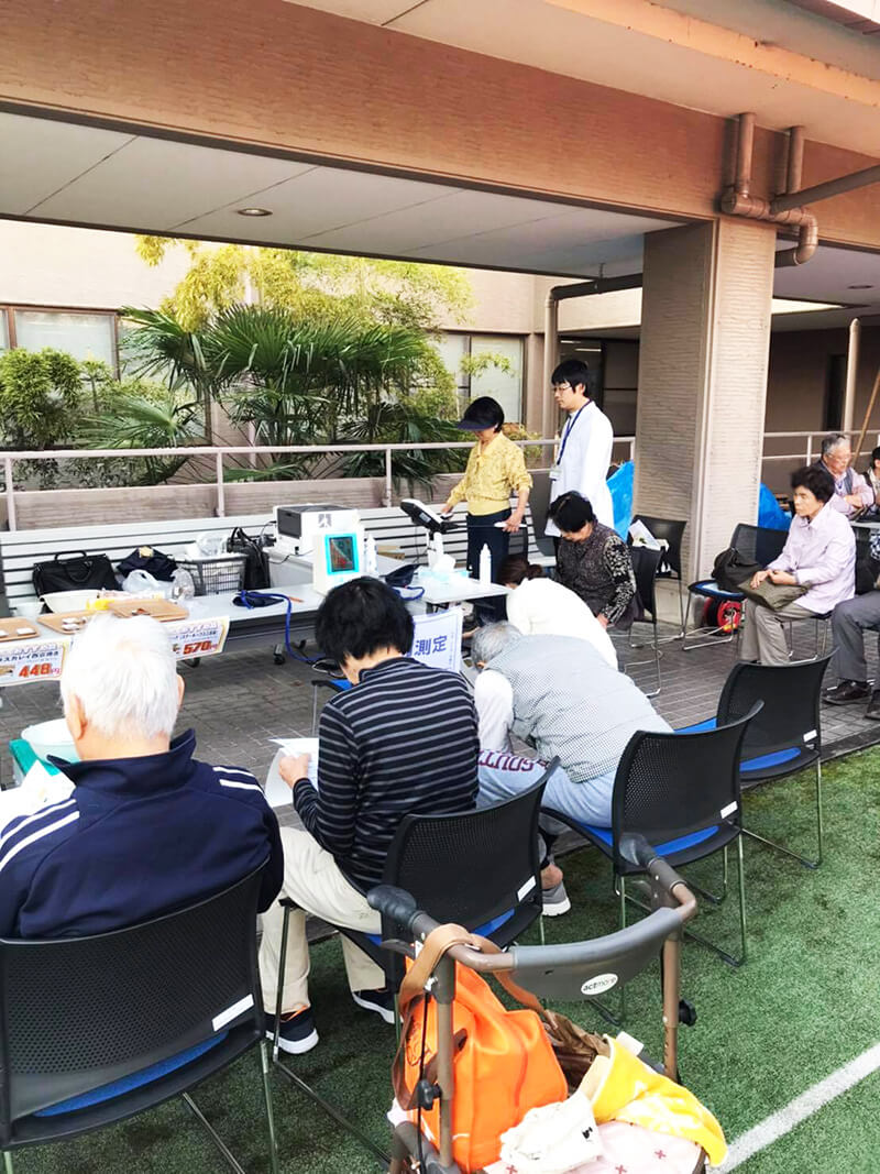 今回は総合福祉会館にて青空カフェの位置イベントとして、血流測定・骨密度測定・筋組成測定・宅配食の試食会を行いました。カフェに参加のお客様のほとんどが測定体験していただけました。予想以上のご参加で待ち時間が長かったので申し訳なかったです・・。