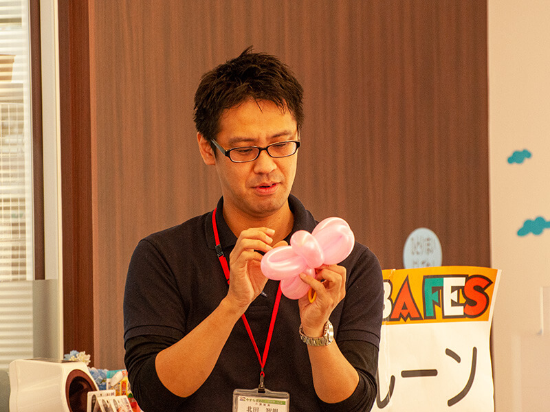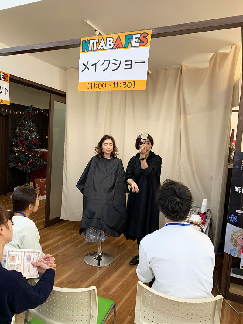 キタバ薬局河内長野店1階ではメイクアップ体験やフォトスポット・バルーンアート・スタンプラリー、 2階デイサービスフロアでは親子料理教室や様々なブースを出店しました。