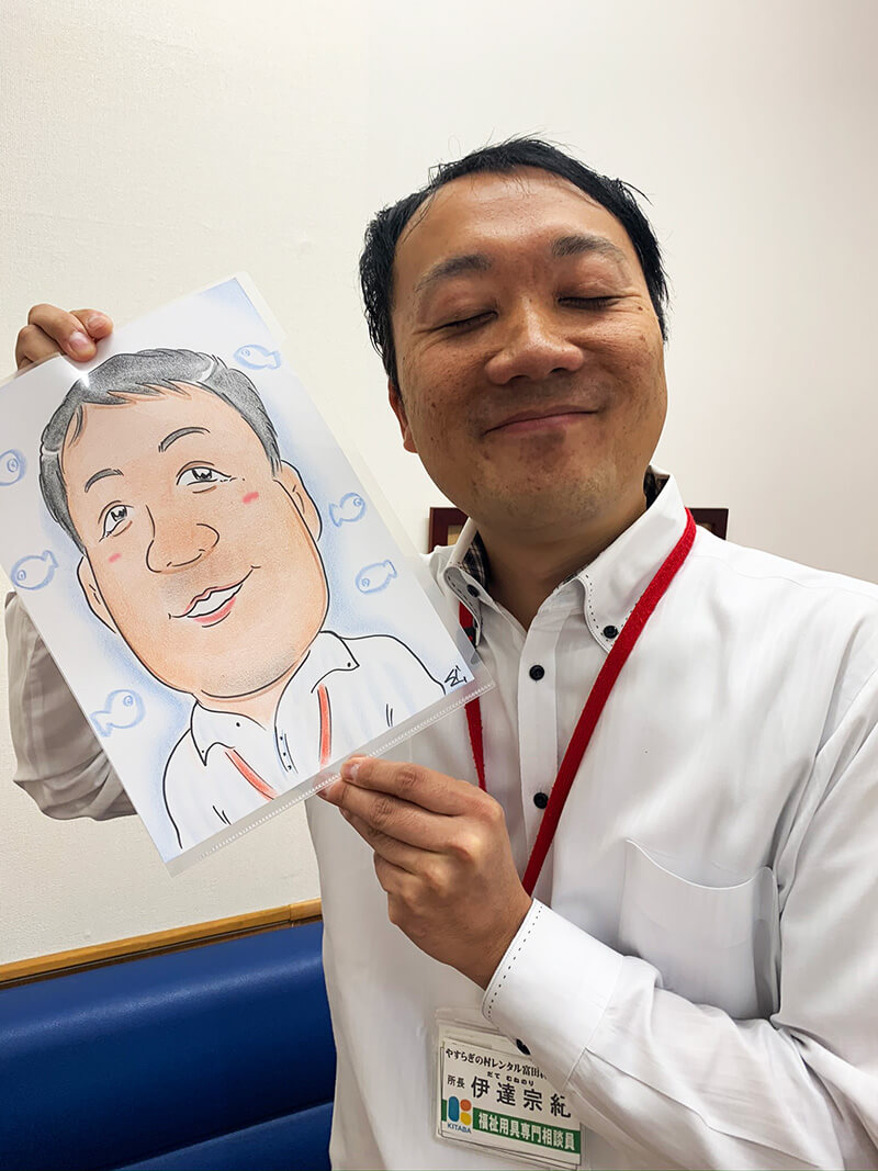 福祉や介護の領域では、おしゃれに対して意識が薄い環境ですが、ときにはおしゃれをして楽しい時間を過ごせてもらえるようお化粧をして、お気に入りの服を着て、BGMで好きな音楽をかけて、レッドカーペットを歩いていただきます。