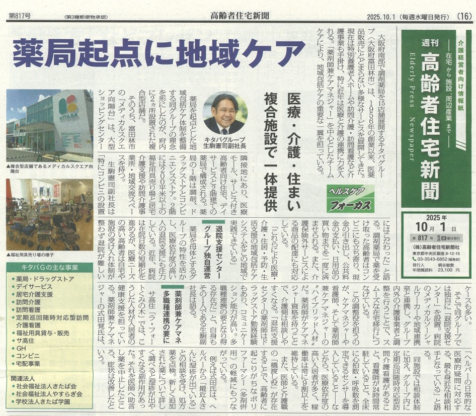 当社の取組みが『高齢者住宅新聞』さんに掲載されました。